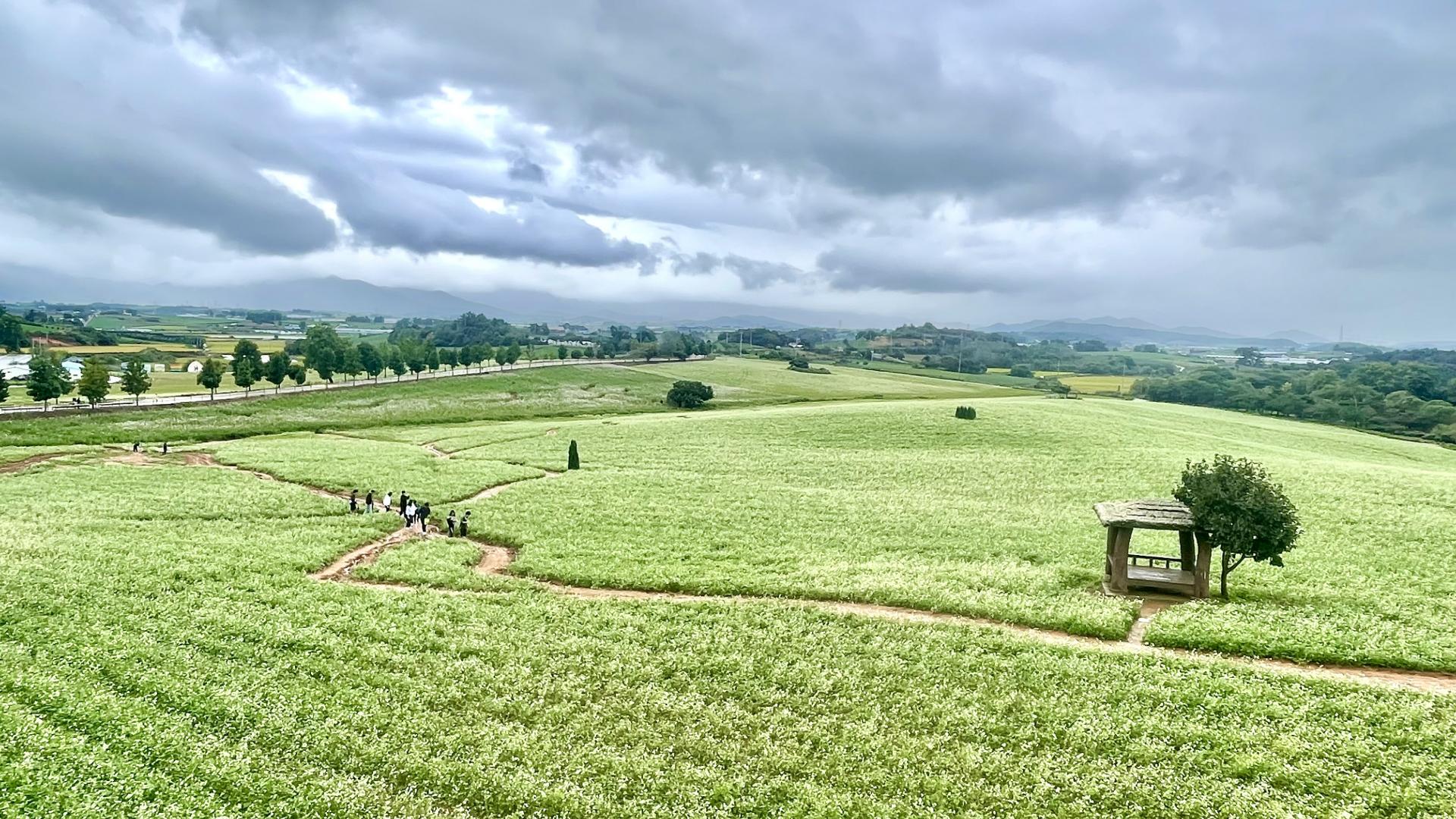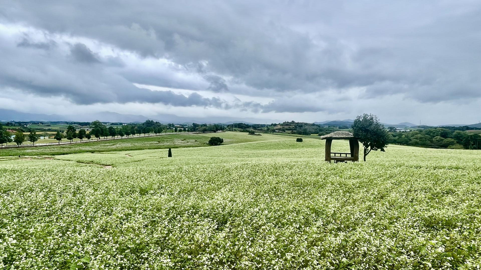 날은 궂었지만 메밀꽃은 한층 더 하얗게 구릉지를 덮어갑니다.